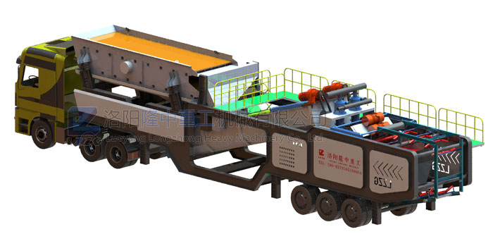 上面所說到的移動洗沙機設備,就是隆中機器的一款可移動式的制砂機,無需打樁,開到生產現場即可投產使用,省去了安裝配置環節,盈利也快人一步。
